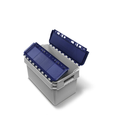 UN approved distribution bins are UN-X or Y certified (4H2) for solids. They are nestable when empty and stackable on the closed lid. The lid halves are integrated in the bin and are lockable and sealable for a save transport and storage of your dangerous goods.